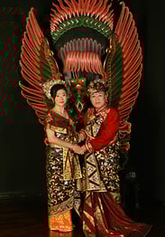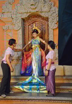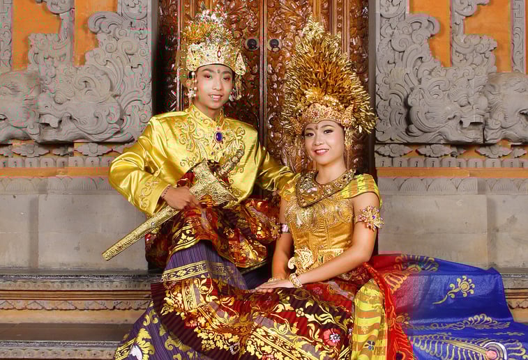 バリの結婚式衣装、バリ舞踊衣装など、女性用・男性用・カップル用の約80種類の豊富な衣装揃えから、お好きな色の組み合わせで1着を選べます。